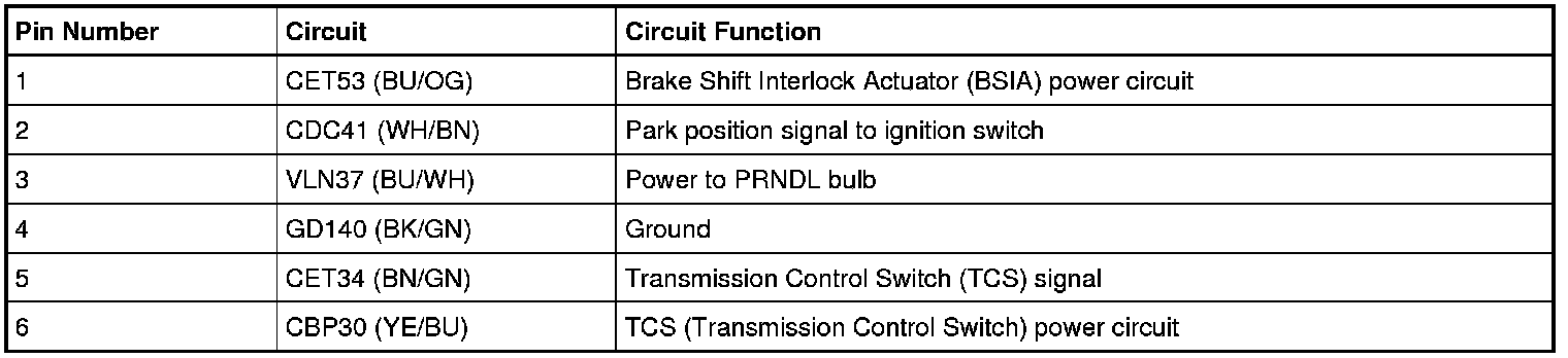Selector Lever Harness C2096 (Vehicle Harness Side)