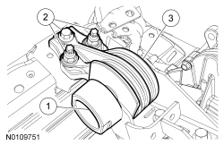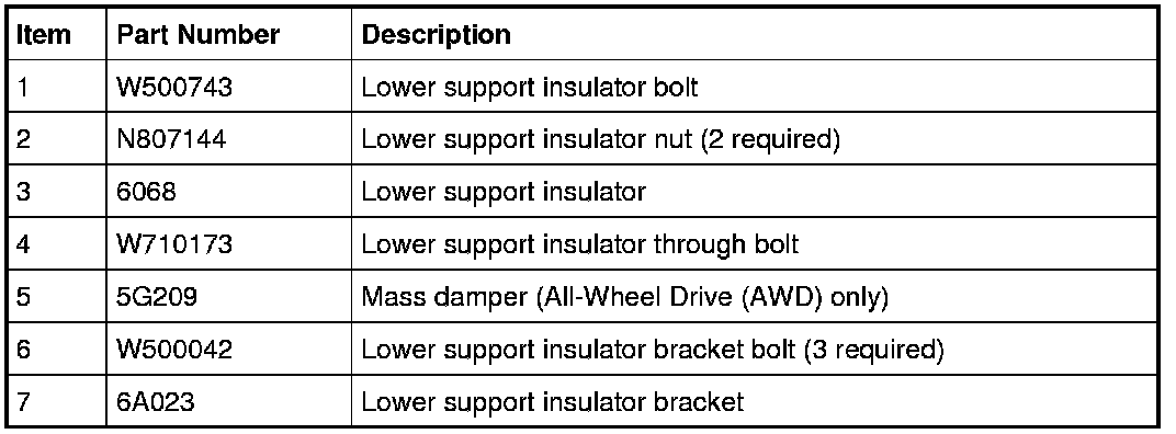 2. NOTE: All-Wheel Drive (AWD) shown, Front Wheel Drive (FWD) similar. Vehicles equipped with AWD (All-Wheel Drive) have a damper that is held on by the through bolt.
