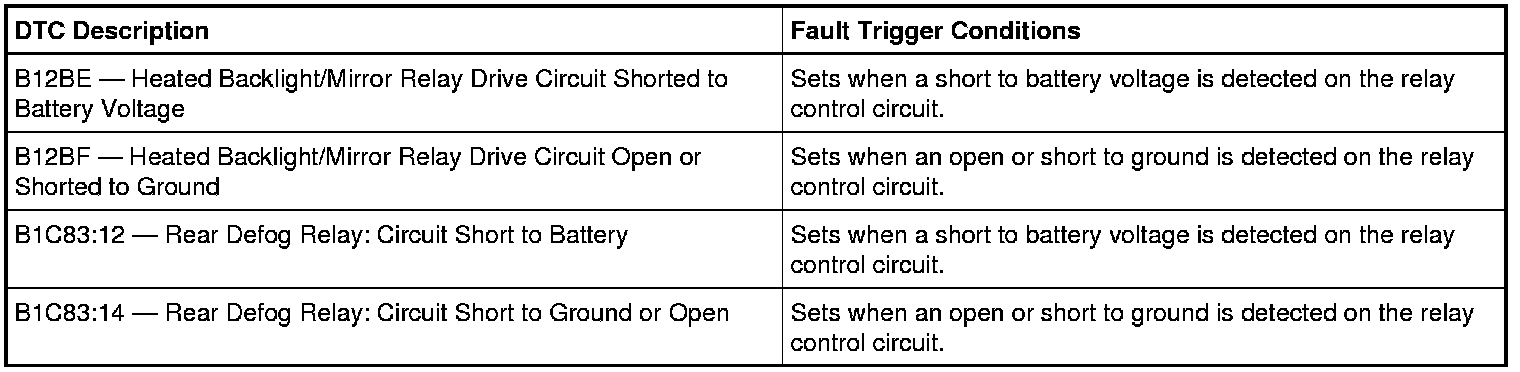 INSTALL a new rear window defrost relay. CLEAR all DTCs. TEST the system for normal operation.