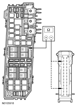 - Measure the resistance between rear window defrost relay socket pin 2, circuit CH122 (WH/OG) and HVAC module EMTC (Electronic Manual Temperature Control) C2357A-3, HVAC module- DATC (Dual Automatic Temperature Control) C2356A-3 (non-hybrid) or C2356A-12 (hybrid), circuit CH122 (WH/OG), harness side.