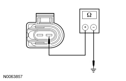 - Measure the resistance between washer pump C1397-1, circuit CRW24 (GY), harness side and ground.