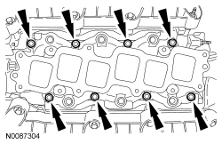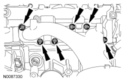 25. NOTICE: If the engine is repaired or replaced because of upper engine failure, typically including valve or piston damage, check the intake manifold for metal debris. If metal debris is found, install a new intake manifold. Failure to follow these instructions can result in engine damage.
