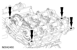 Install the 2 bolts and the RH VCT (Variable Camshaft Timing) solenoid.