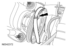 45. Retain the tensioner piston with a 1.5 mm (0.06 in) diameter wire or paper clip.