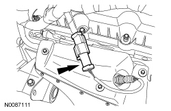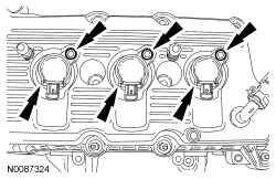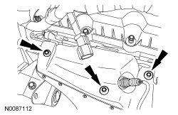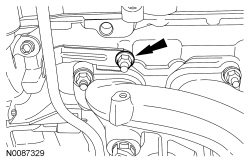 Install the 2 bolts and the LH Variable Camshaft Timing (VCT) solenoid.