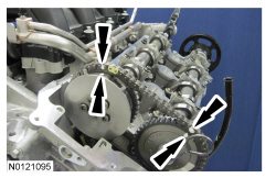 21. NOTICE: Damage to the camshaft phaser and sprocket assembly will occur if mishandled or used as a lifting or leveraging device.