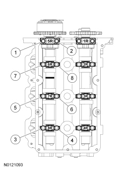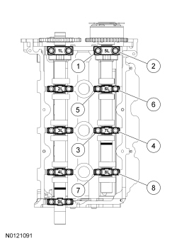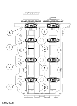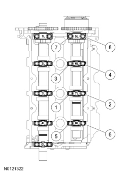 - Stage 2: Individually loosen and then tighten each camshaft bearing cap to 10 Nm (89 lb-in).
