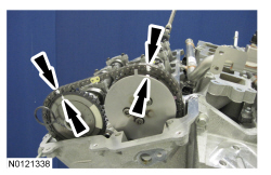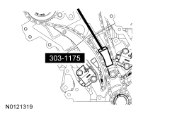 Install the Timing Chain Locking Tool in the LH timing chain as shown.