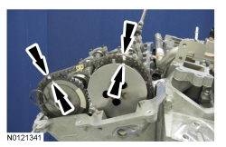 Remove the Timing Chain Locking Tool from the LH timing chain.