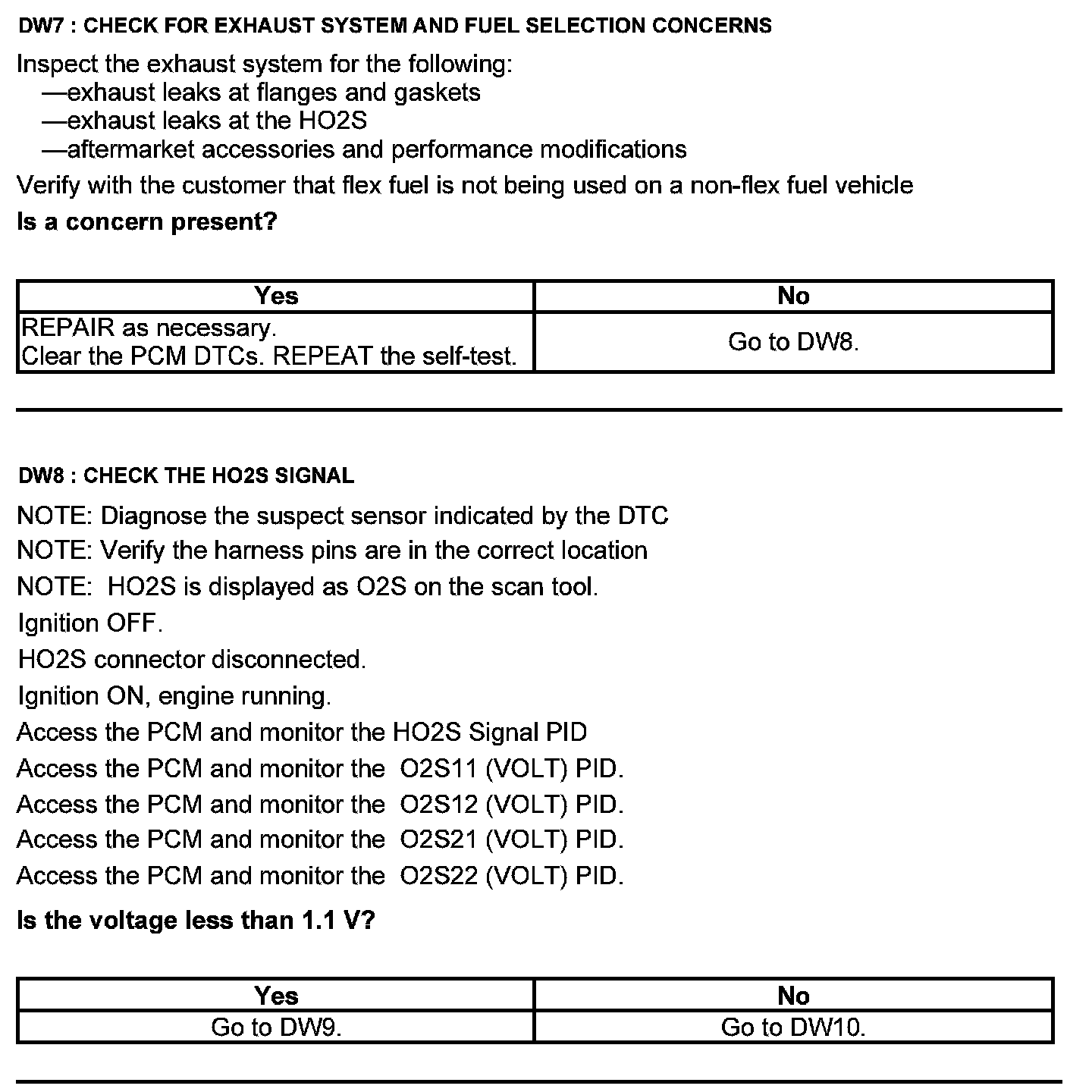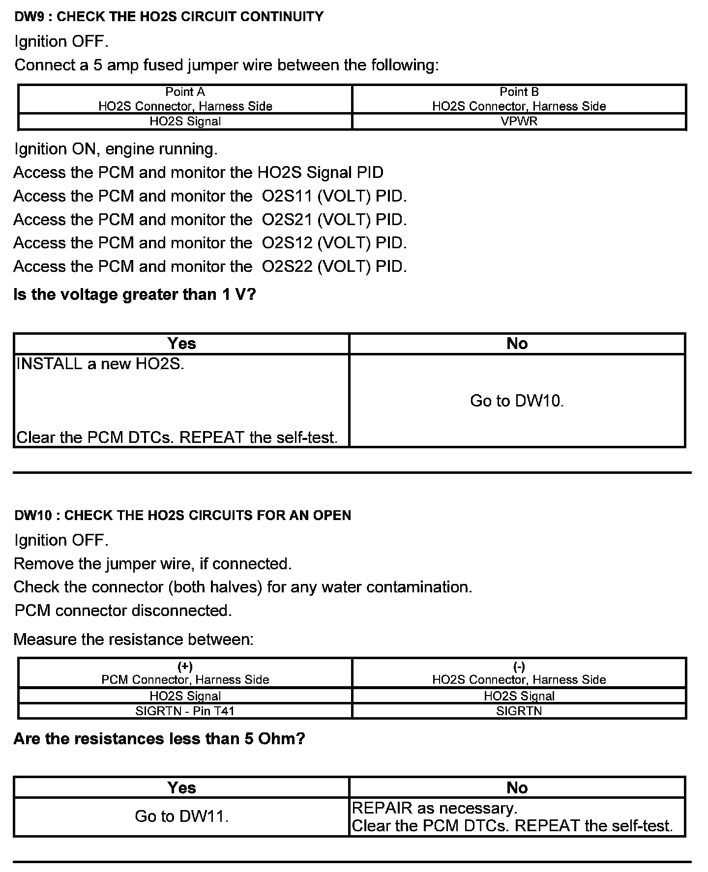 Test DW: Heated Oxygen Sensor (HO2S)