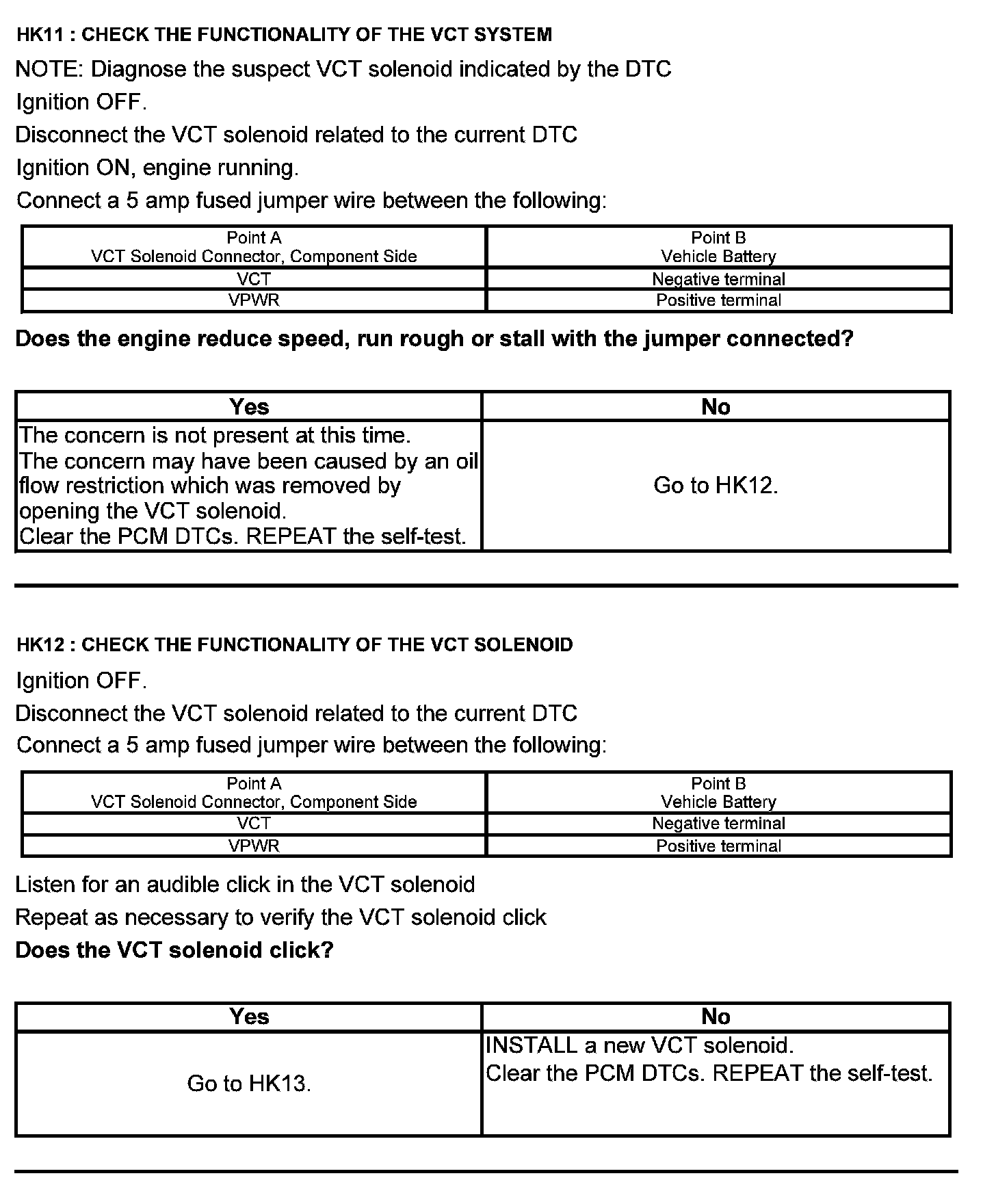 Test HK: Variable Camshaft Timing (VCT)