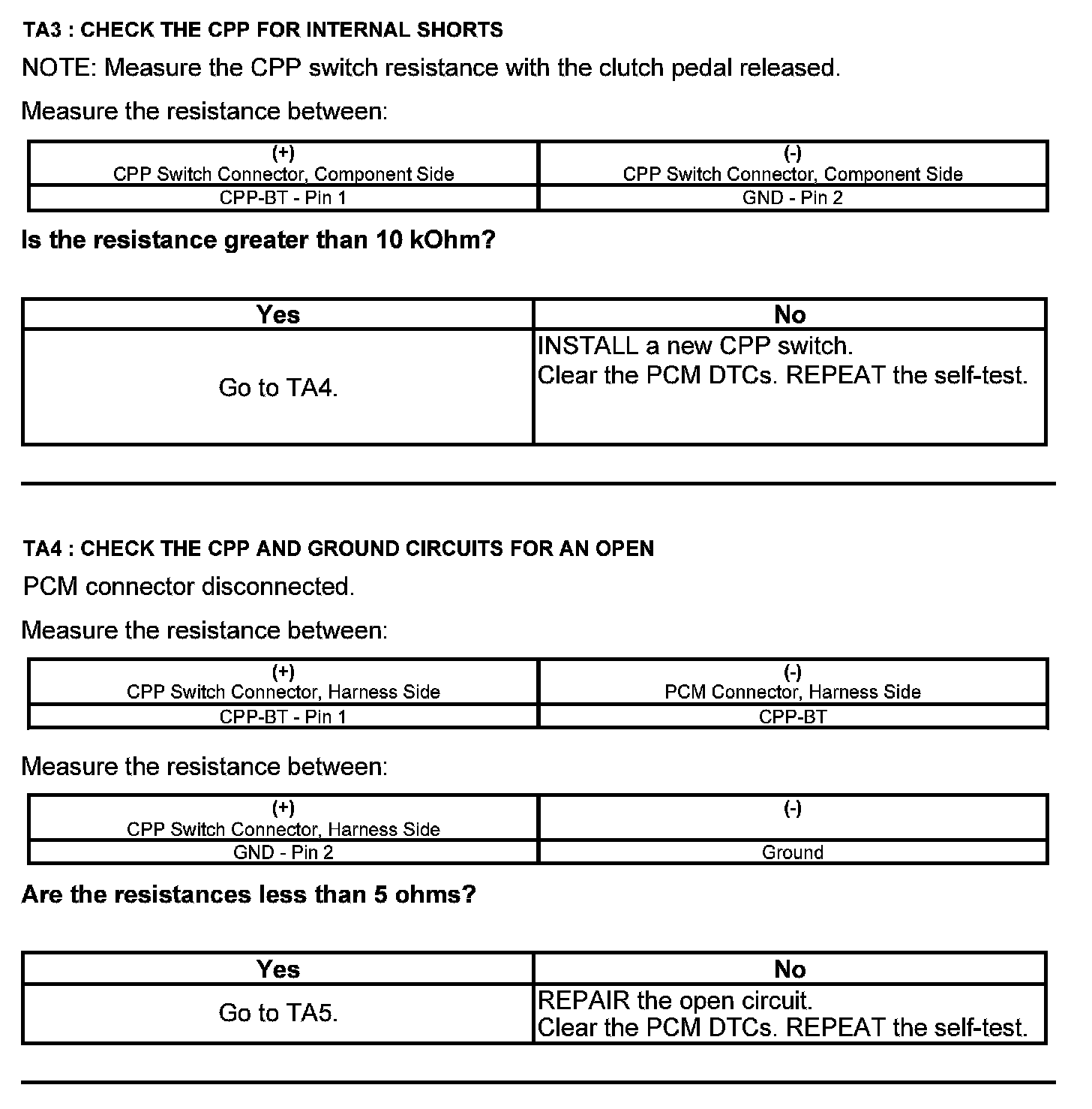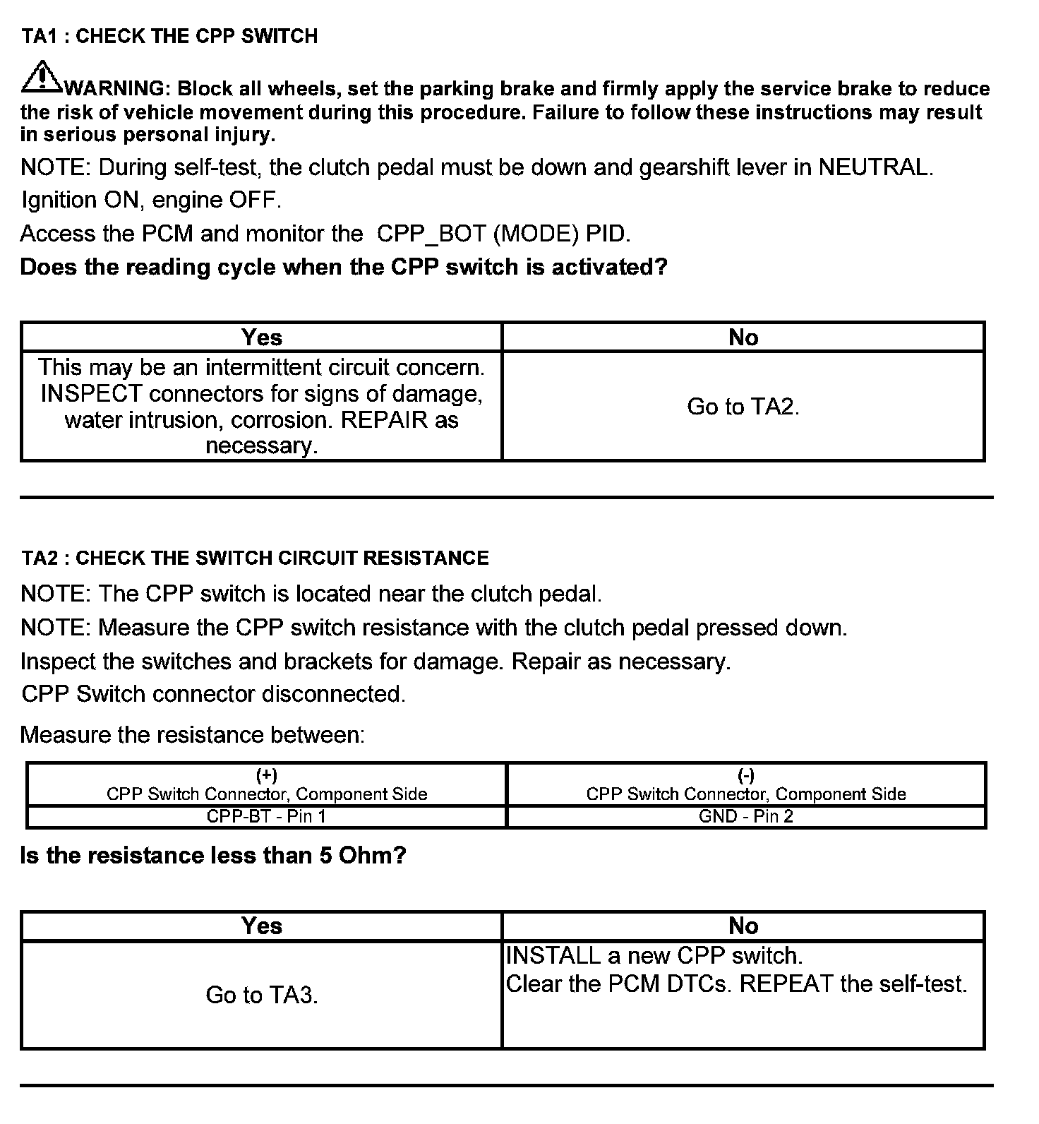 Test TA: Clutch Pedal Position (CPP#2) Switch