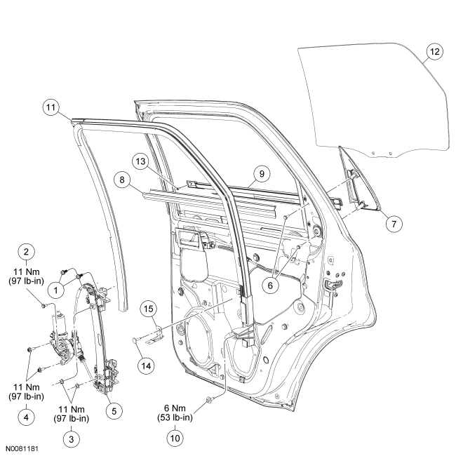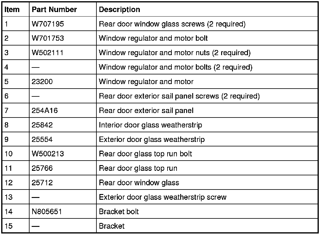 Glass, Frames and Mechanisms - Exploded View, Rear Door