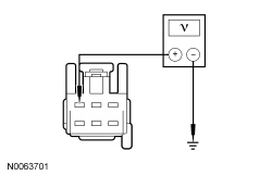 While operating the exterior mirror control switch in the leftward position, measure the voltage between ground and inoperative exterior mirror: