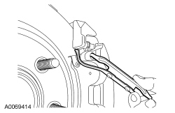 For the LH brake caliper, release the lower portion of the brake pad anti-rattle spring.