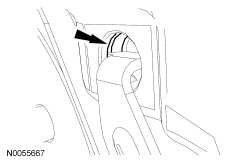 3. NOTICE: If the brake pad anti-rattle spring is to be removed, do not force the spring off the brake caliper or damage to the spring can occur.