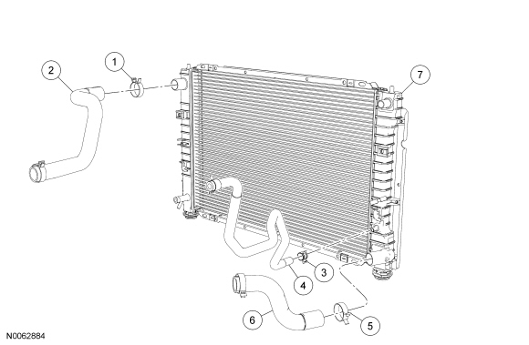 4. Disconnect the lower degas bottle-to-radiator hose from the radiator.