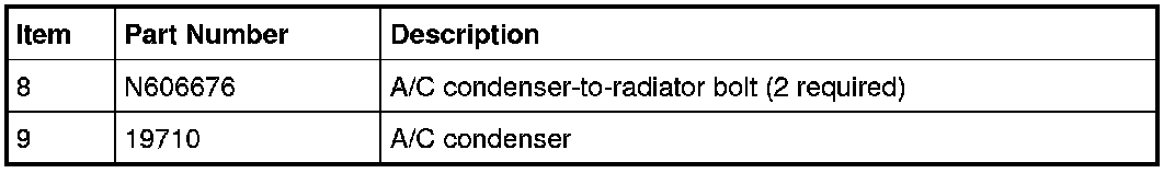 6. Remove the 2 A/C condenser-to-radiator bolts and position aside the A/C condenser.