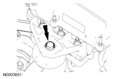 - Tighten the engine support crossmember bolts to 90 Nm (66 lb-ft).