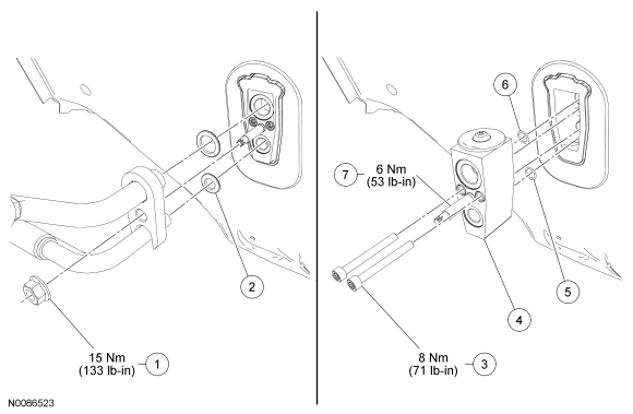 - If the TXV (Thermostatic Expansion Valve) stud has become loose during removal, or has been removed for any reason, tighten the TXV (Thermostatic Expansion Valve) stud to 6 Nm (53 lb-in) before the TXV (Thermostatic Expansion Valve) fitting nut is reinstalled.