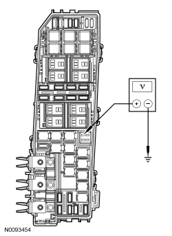 - Measure the voltage between ground and PCM C175B-12, circuit CH302 (WH/BN), harness side.