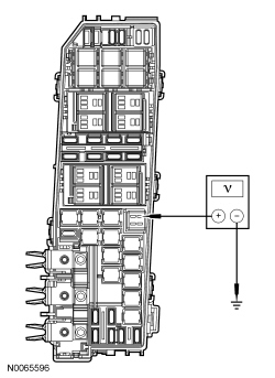 - Measure the voltage between ground and the A/C clutch relay socket, circuit SBB13 (GY/RD).