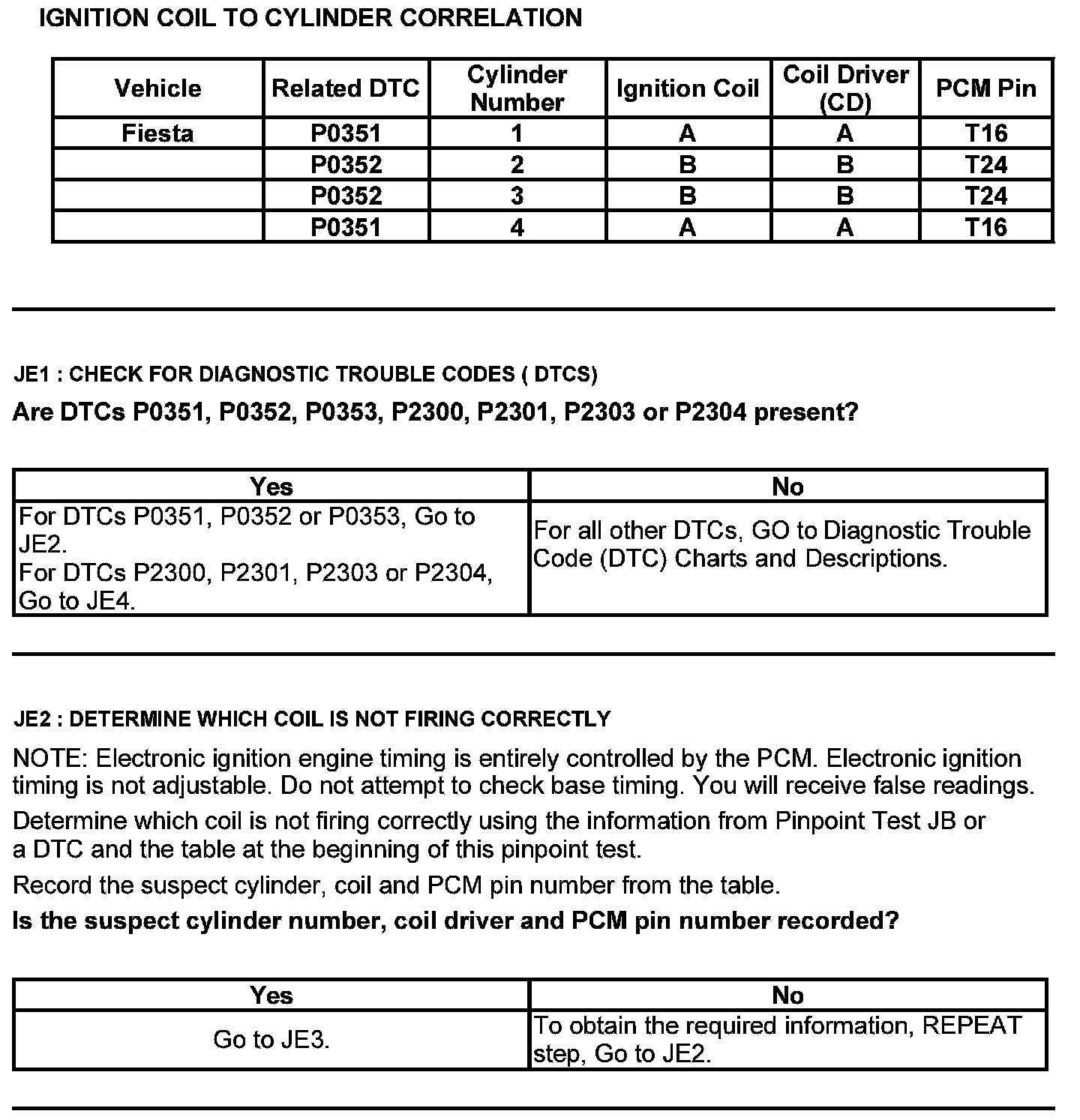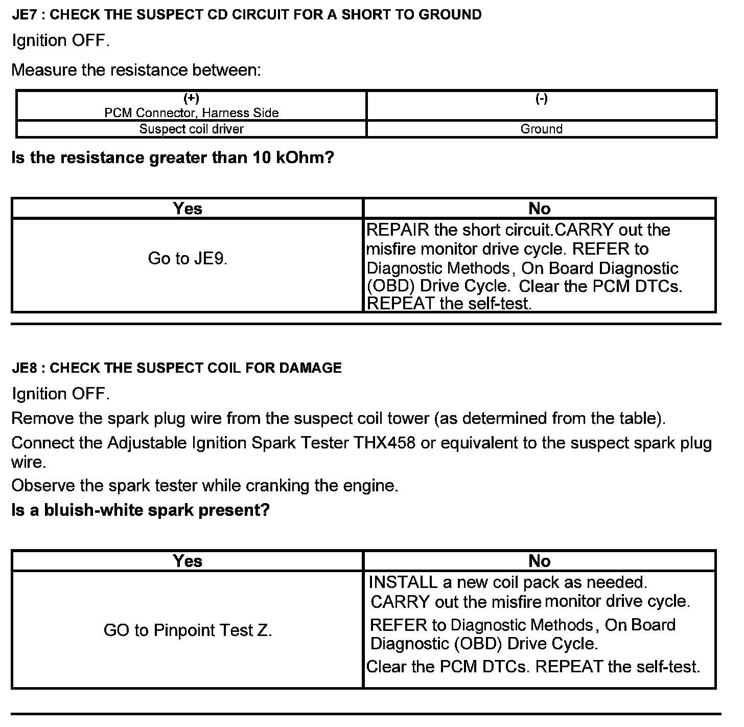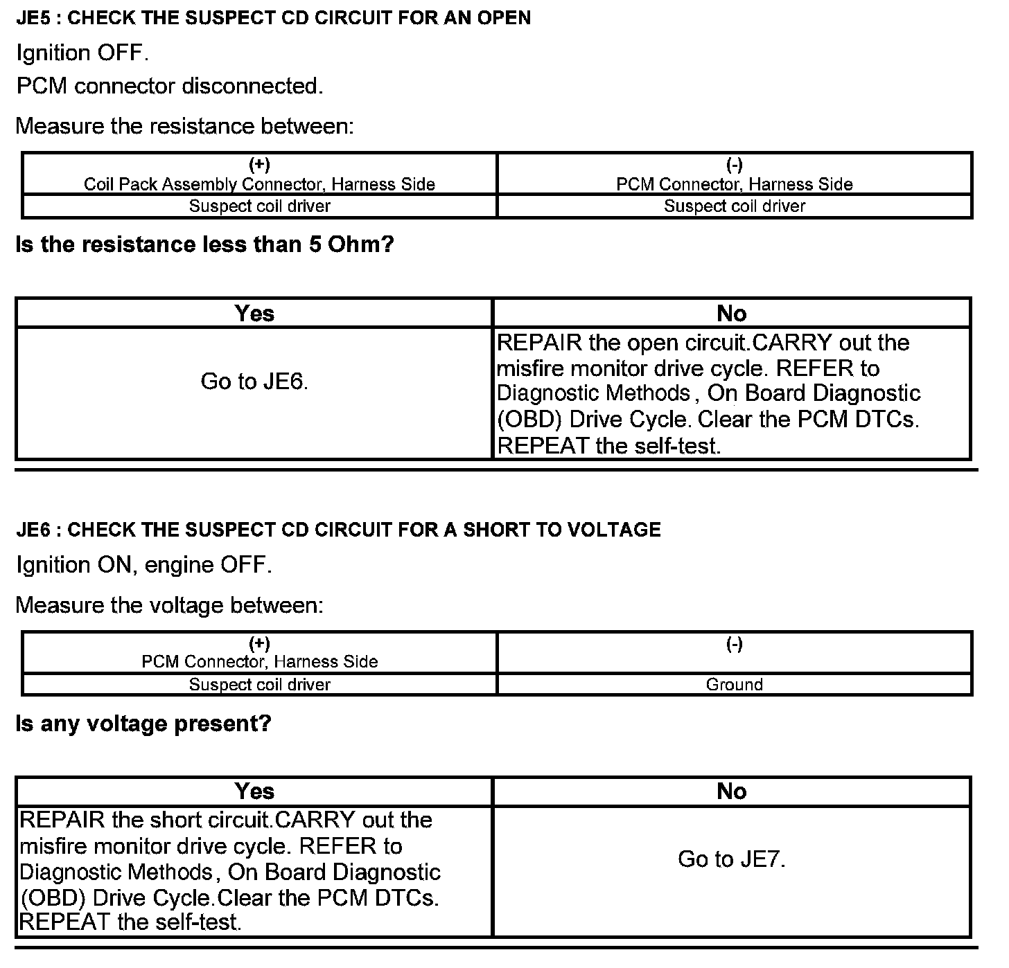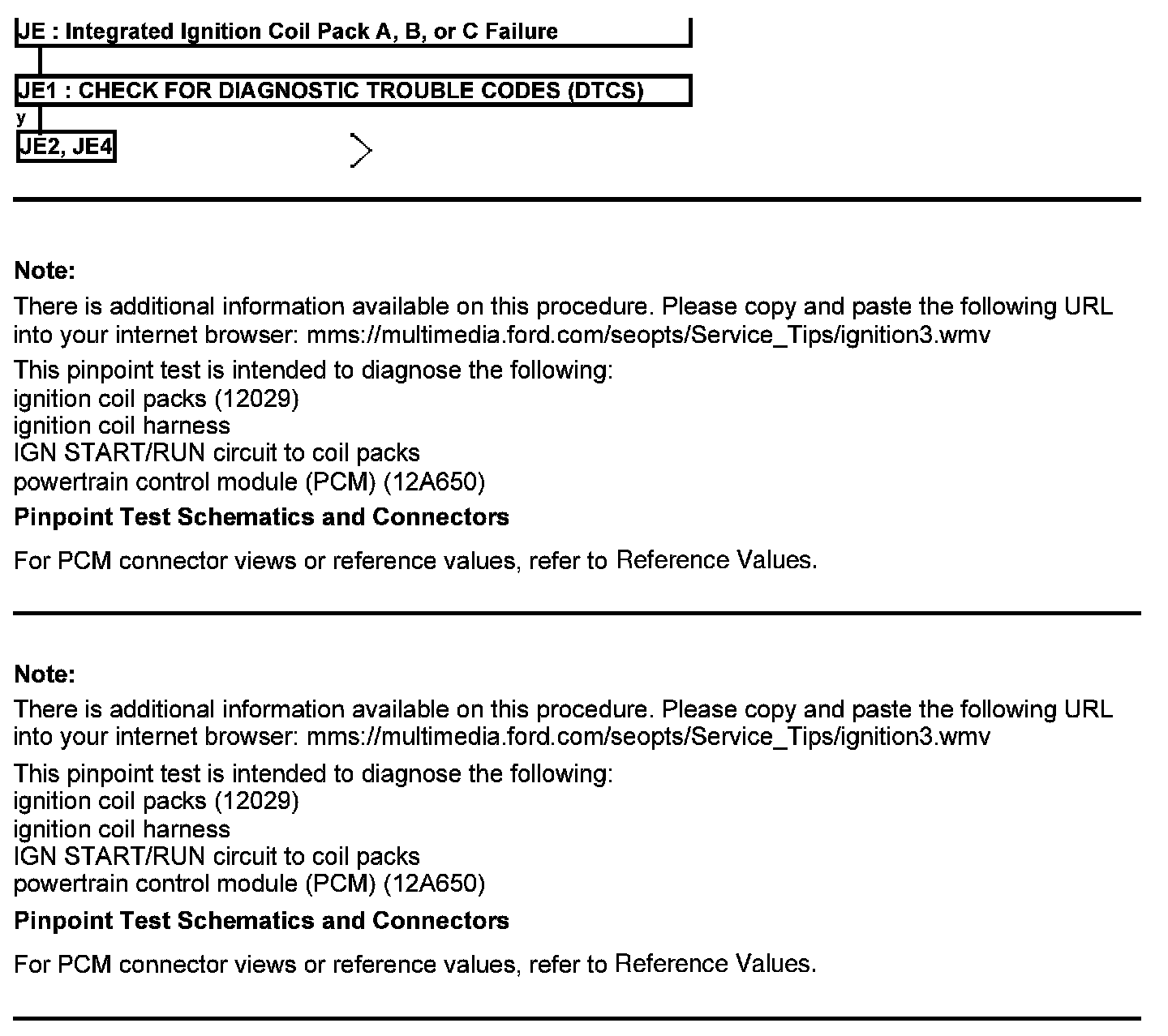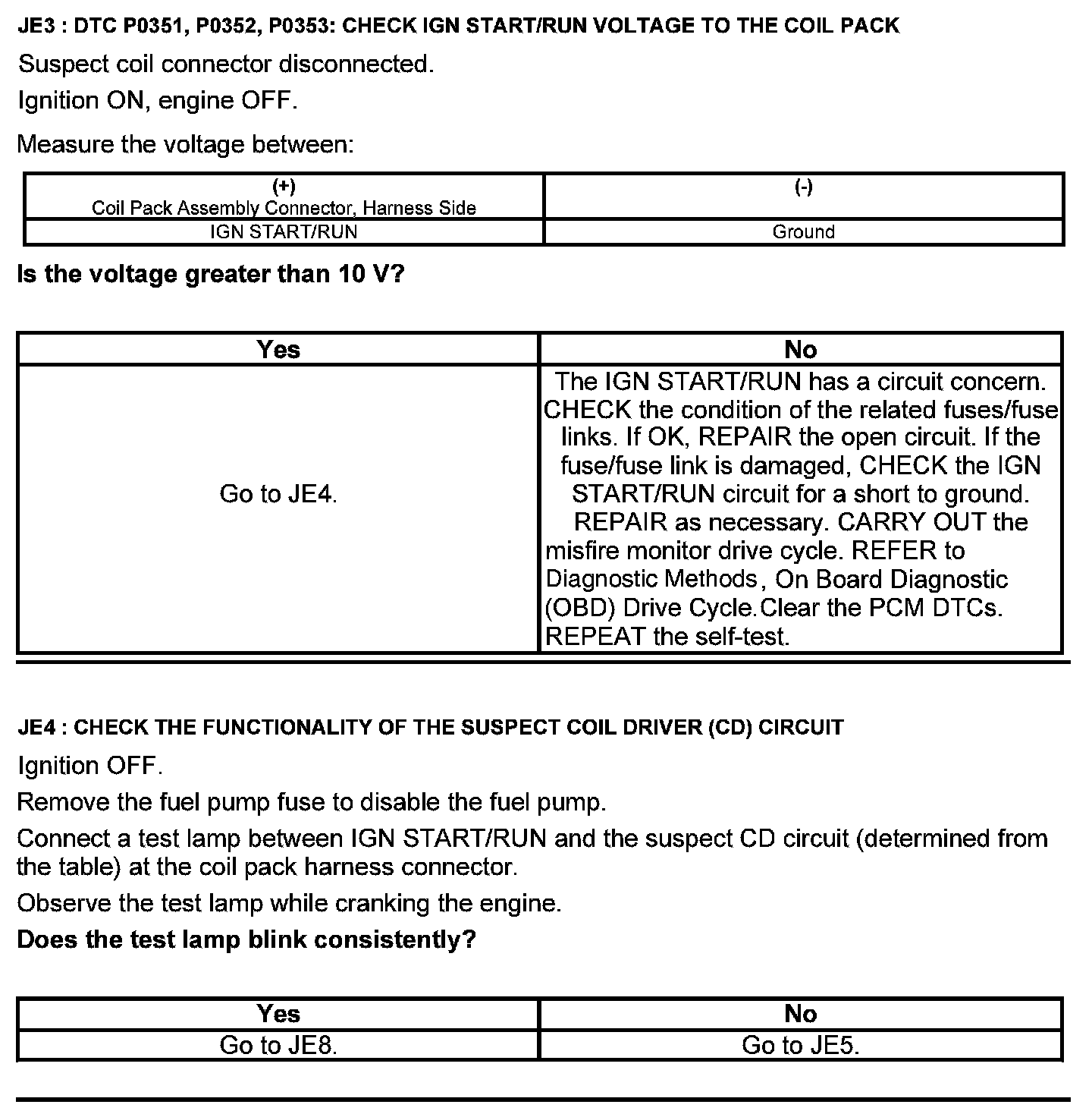Test JE: Integrated Ignition Coil Pack A, B, or C Failure