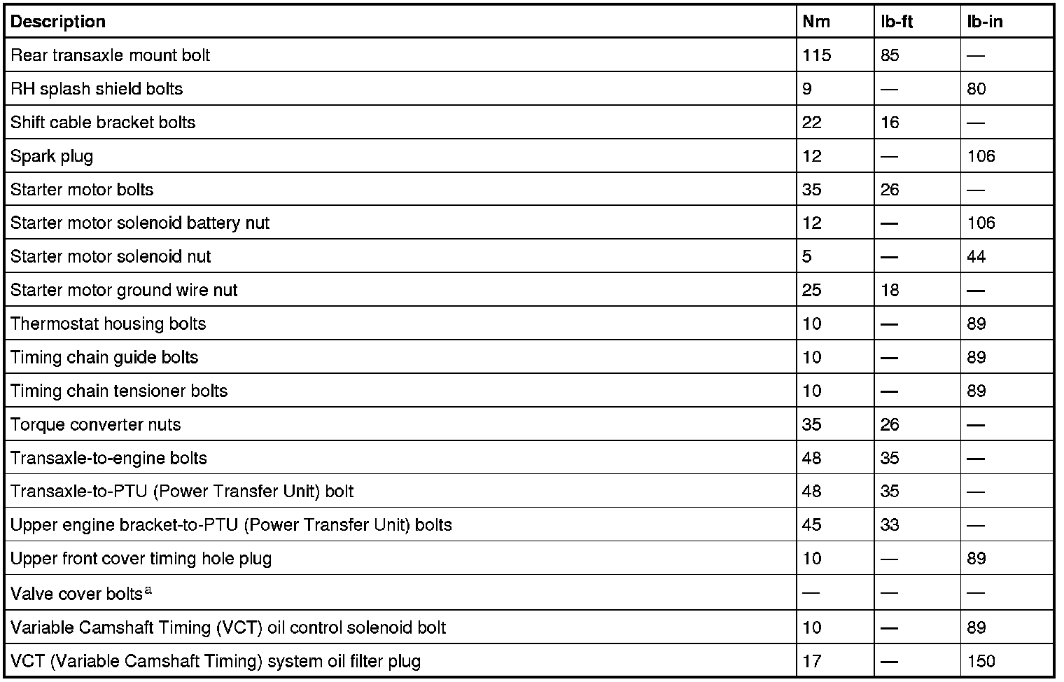Torque Specifications