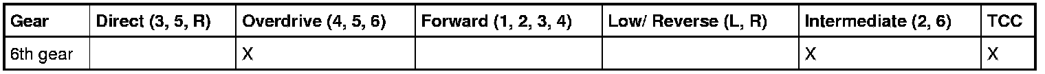 6th Gear TCC (Torque Converter Clutch) Applied Clutch Application Chart