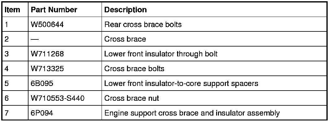 4. Remove the lower front insulator through bolt and the 2 cross brace bolts.