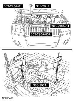 1. With the vehicle in NEUTRAL, position it on a hoist.