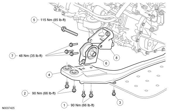 - To install, tighten bolts to 90 Nm (66 lb-ft).