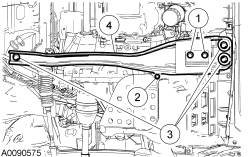 3. Remove the 2 front-to-aft crossmember bolts and the nut.