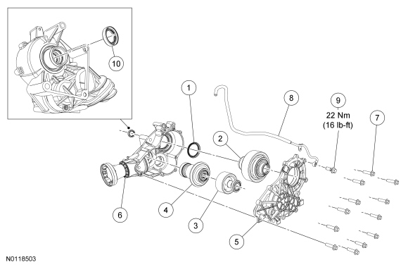 5. Install the PTU (Power Transfer Unit). For additional information, refer to Power Transfer Unit (PTU) .