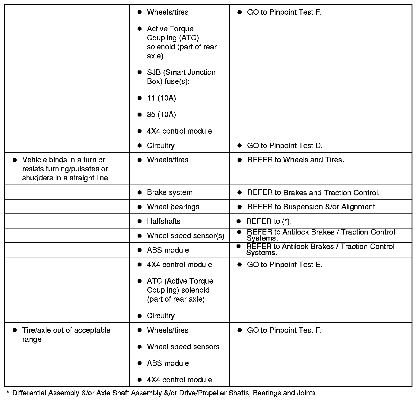Symptom Chart - Four-Wheel Drive (4WD) System