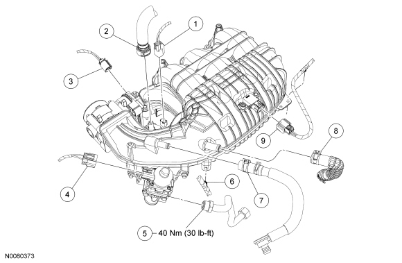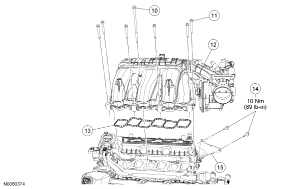 1. NOTICE: If the engine is repaired or replaced because of upper engine failure, typically including valve or piston damage, check the intake manifold for metal debris. If metal debris is found, install a new intake manifold. Failure to follow these instructions can result in engine damage.