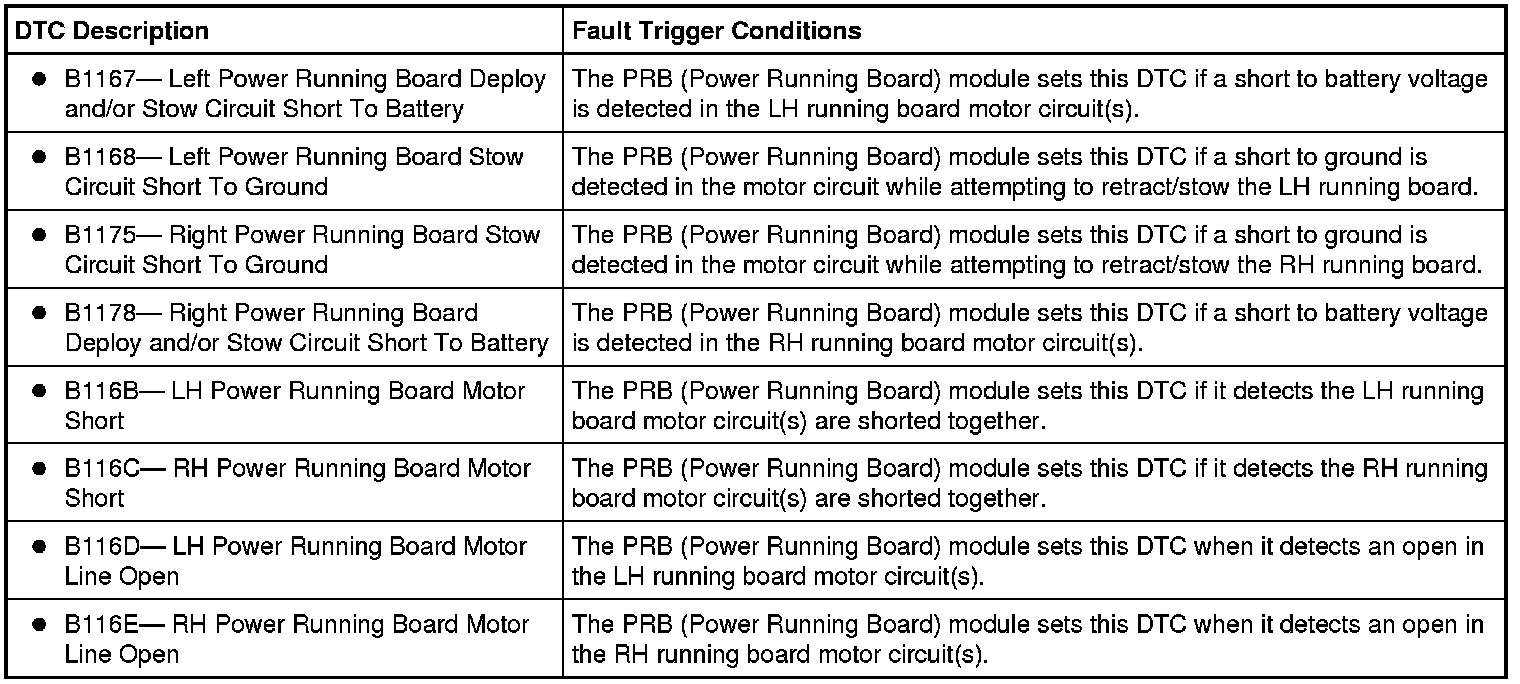 D7 CHECK THE PRB (Power Running Board) MODULE FOR CORRECT OPERATION