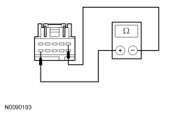 - Measure the resistance between the PAM (Parking Aid Module) C4014B-1, circuit LMP06 (VT/GY), harness side and ground.
