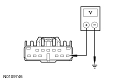 - Measure the voltage between ignition switch C2280E-8, circuit CDC38 (WH/VT), harness side and ground.