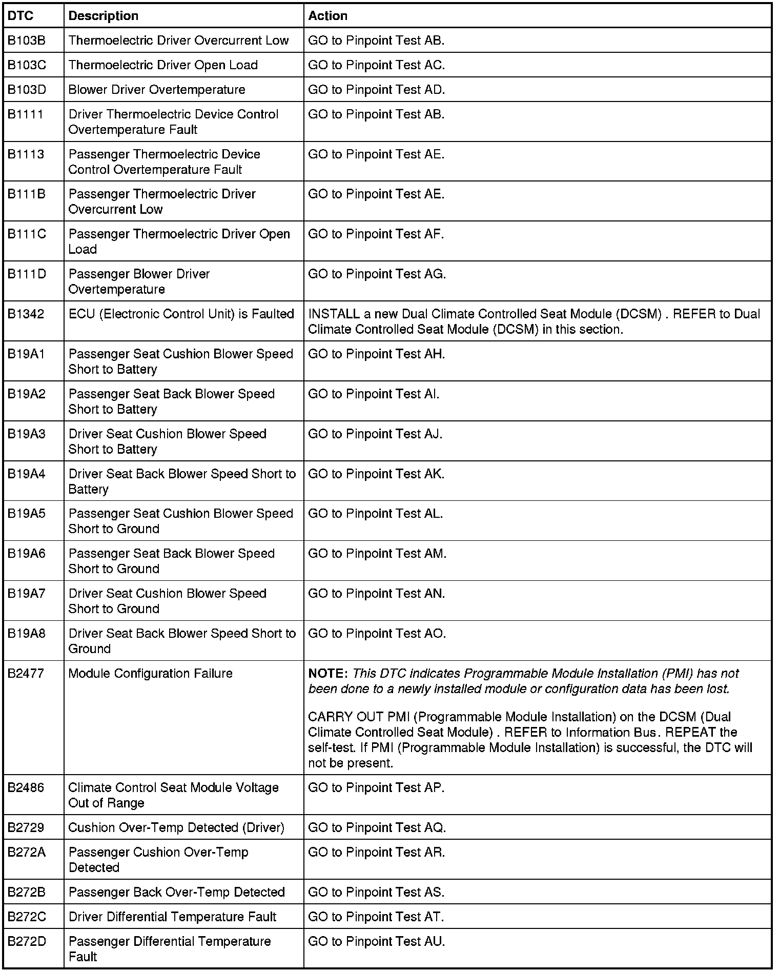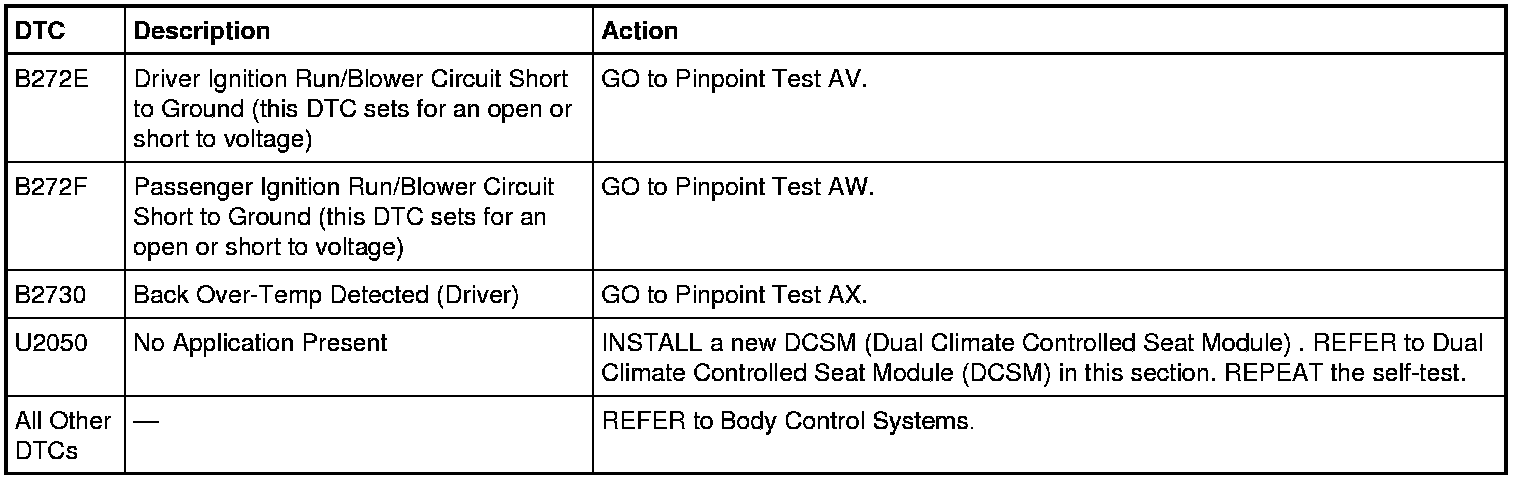 Dual Climate Controlled Seat Module (DCSM) DTC Chart