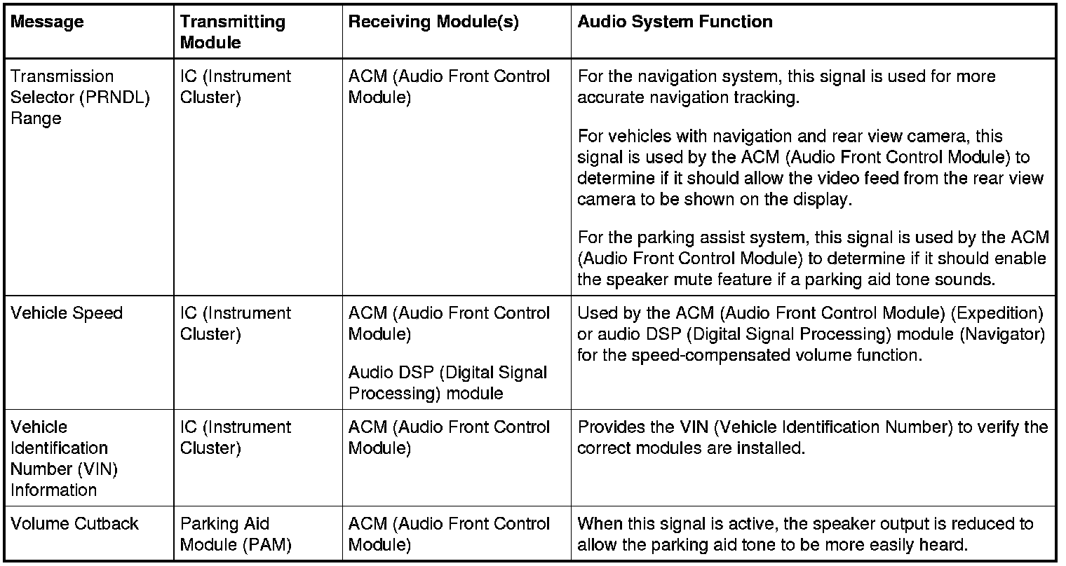 The following audio system components communicate via the MS-CAN (Medium Speed Controller Area Network) :