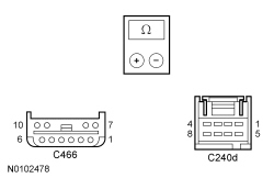 Positive Meter Lead Negative Meter Lead Circuit C466-7 C240D-1, then ground VME22 (VT/GN) C466-8 C240D-2, then ground RME22 (GN/WH)