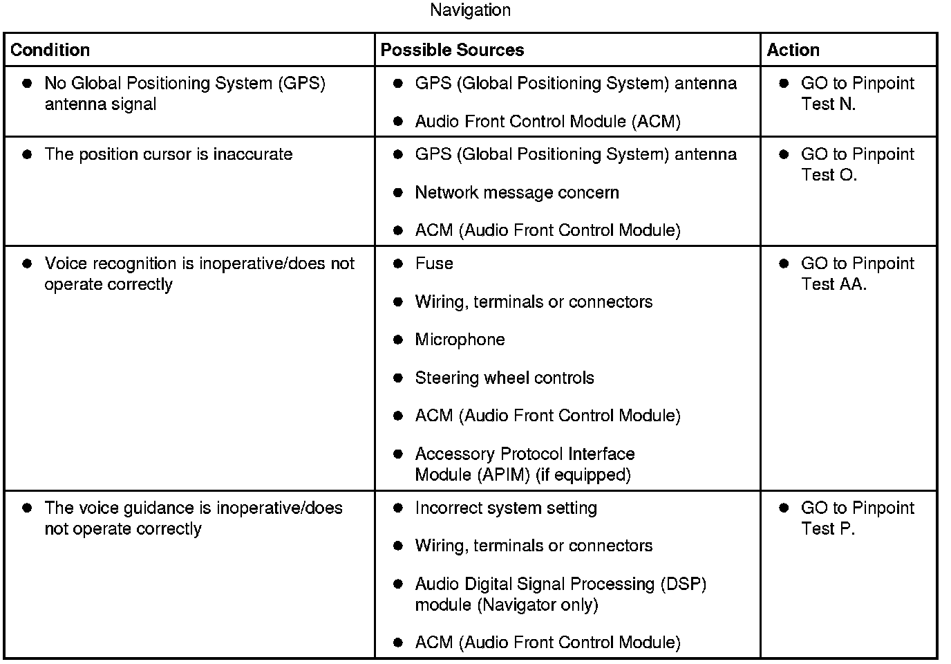 Symptom Chart - Navigation