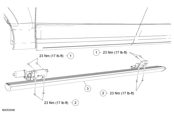 4. NOTICE: An assistant is required to hold the Power Running Board (PRB) before removing the lower bolts. Failure to follow this instruction may result in damage to the component.