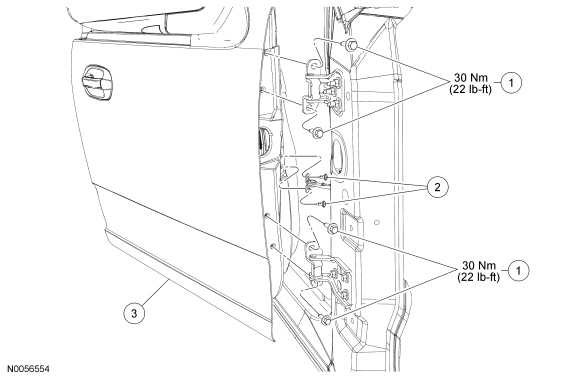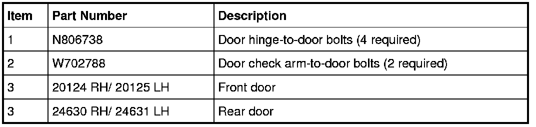 5. If equipped, remove the 2 door check arm-to-door bolts.