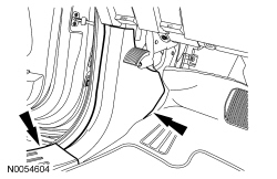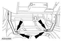 2. If equipped, remove the front floor console. For additional information, refer to Console- Front, Floor, Navigator or Console- Front, Floor, Expedition .