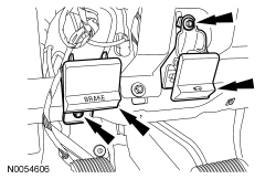 24. Remove the floor console bracket bolts and position the floor console bracket aside.