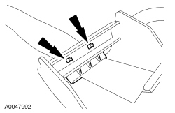11. Release the 2 tabs and detach the safety belt retractor guide.