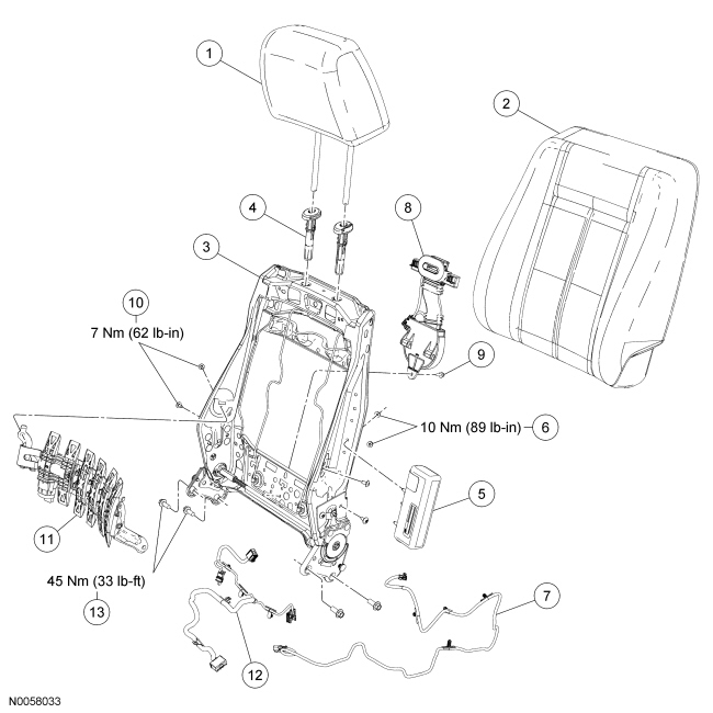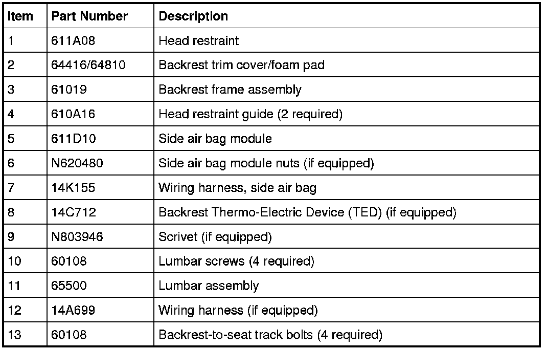 NOTE: Driver power seat backrest shown, passenger and manual similar.