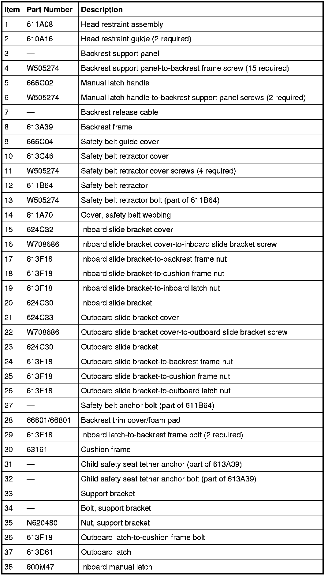 Seat - Exploded View, Third Row